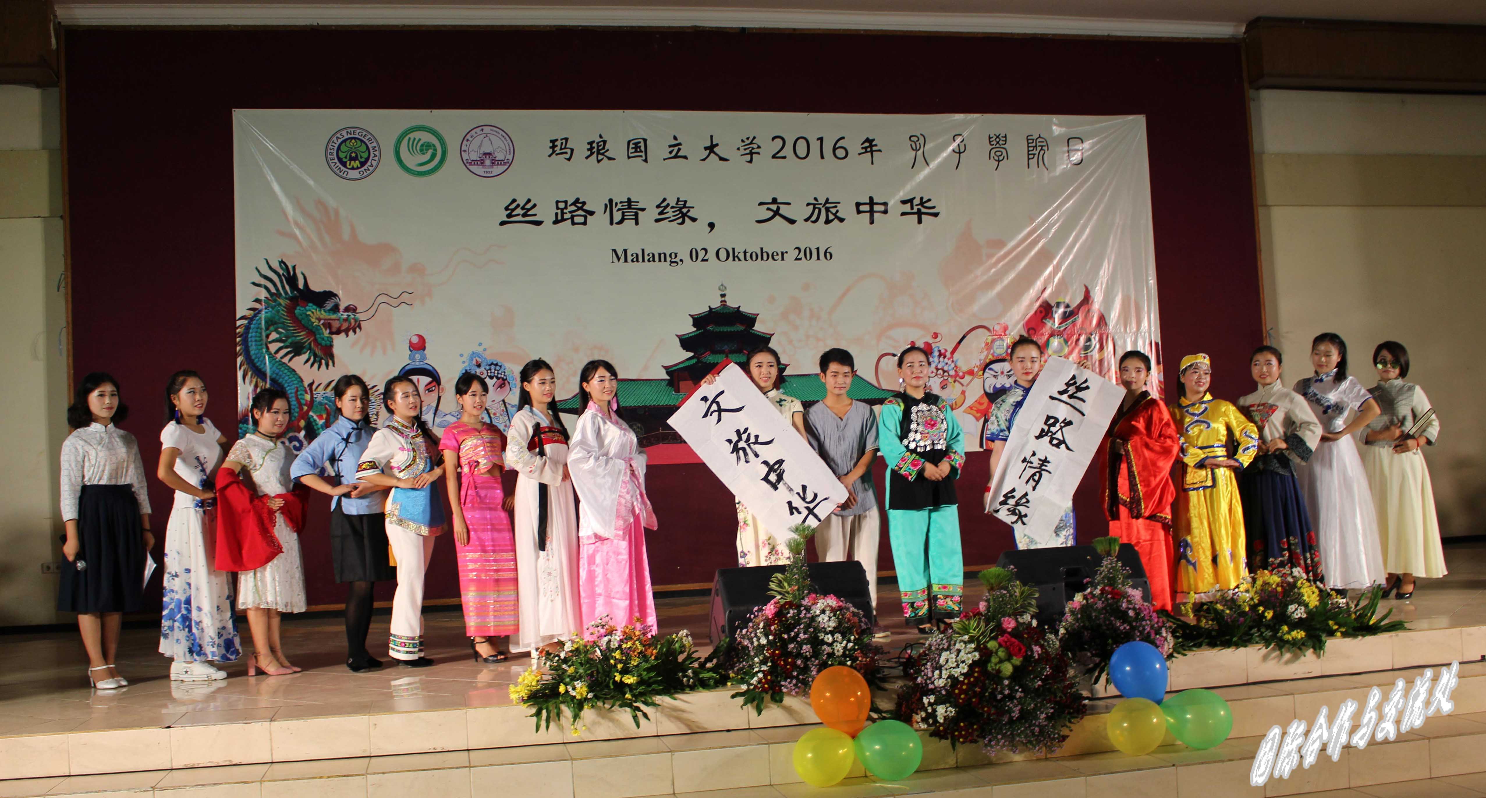 beat365官网学生印度尼西亚玛琅国立大学表演《中华民族服装秀》