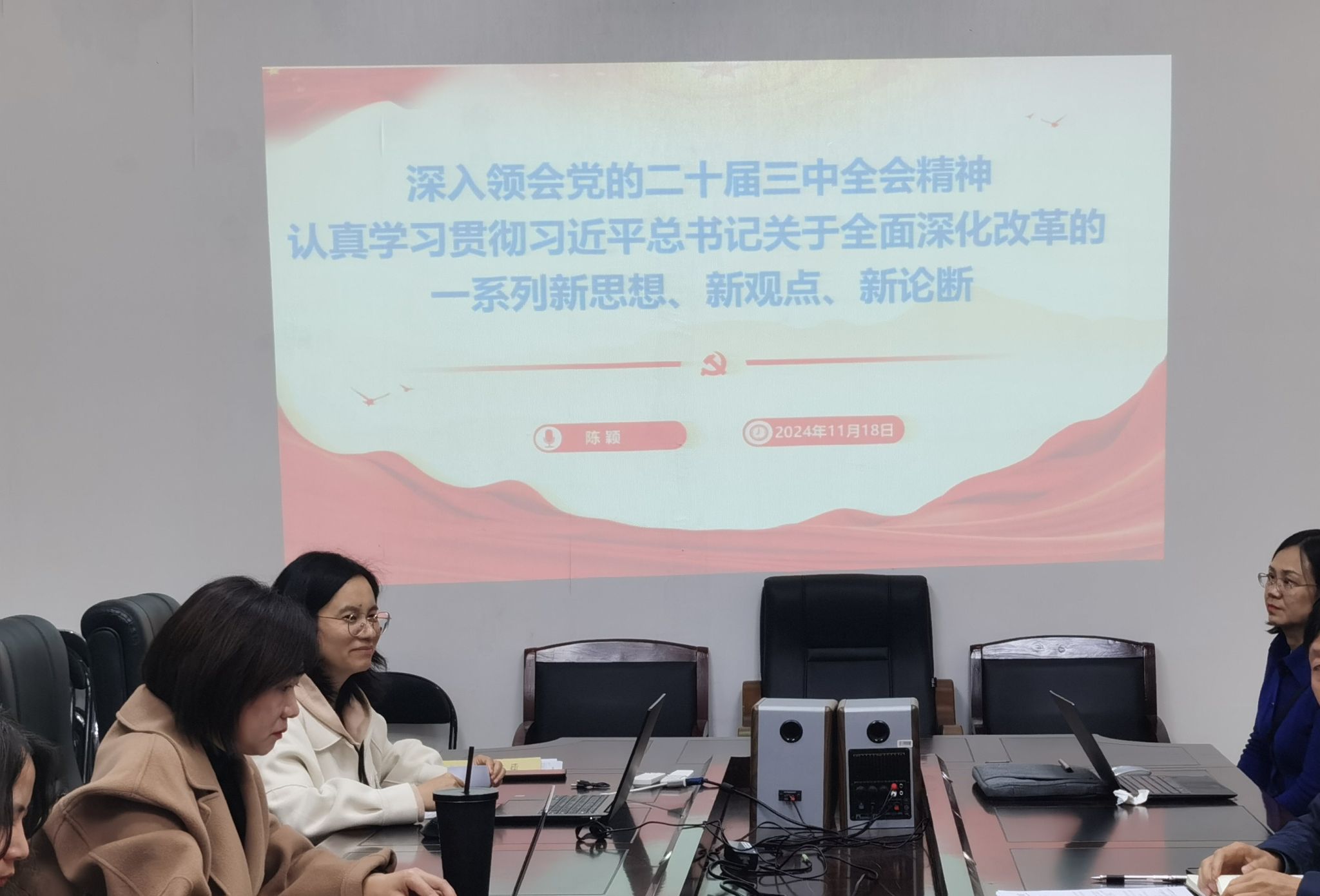 教工党支部书记陈颖以《深入领会党的二十届三中全会精神,认真学习贯彻习近平总书记关于全面深化改革的一系列新思想、新观点、新论断》为题为大家上党课。她主要从深刻认识全会的重大意义、学习领会习近平总书记关于全面深化改革的重要论述、准确把握进一步全面深化改革的总体要求、以及深入把握进一步全面深化改革的重点任务四个方面对党的二十届三中全会精神进行了重点解读。通过此次学习培训,党员教师、科级干部对党的二十届三中全会精神有了进一步的认识和理解。