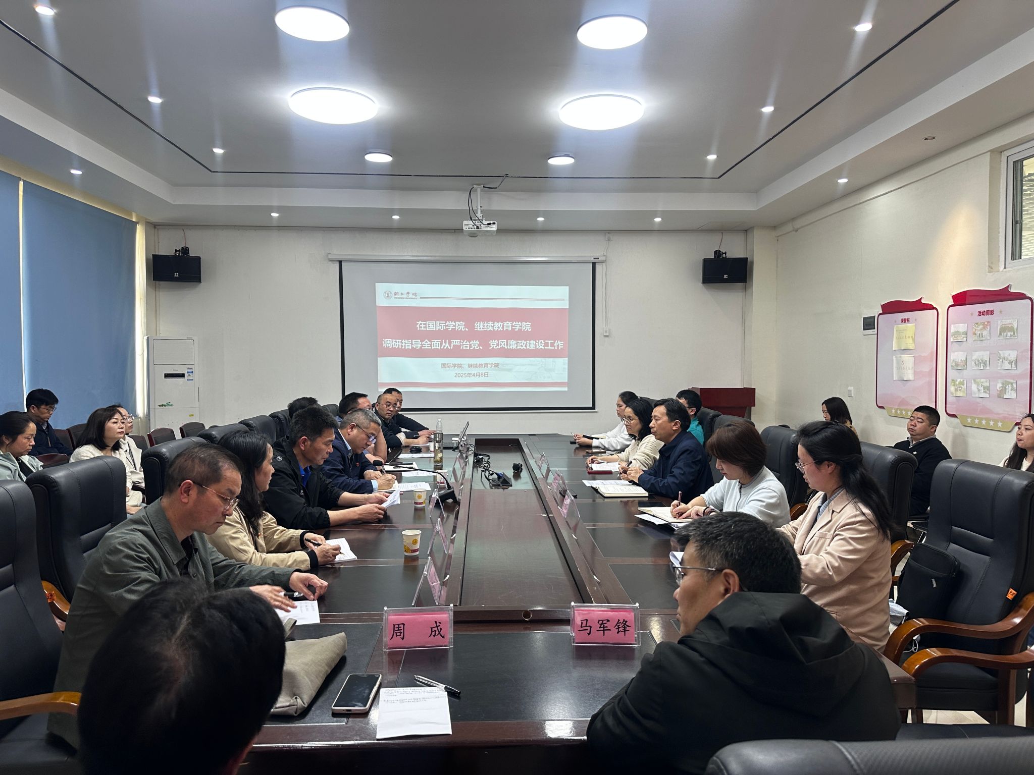 4月8日下午,beat365中国唯一官网党委委员、副校长杨建,校纪委委员、审计处处长田华一行到国际学院开展全面从严治党、党风廉政建设现场调研指导。会议由国际学院党委书记张志会主持,国际学院、继续教育学院全体教职工参加会议。