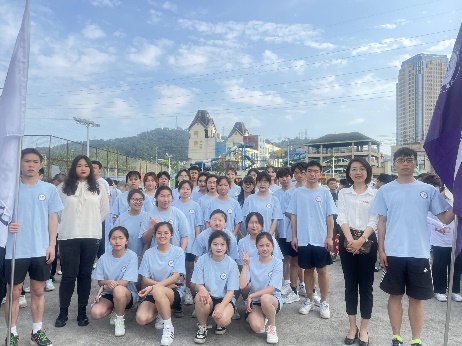 国际学院党委副书记鲁芮汐教授和学生科付睿荻老师带领着国际学院方阵昂首阔步地走过主席台,尽显我院师生朝气蓬勃的精神风貌。紧接着,我院方队的啦啦操表演彰显出无尽的青春活力,赢得了无数的掌声。