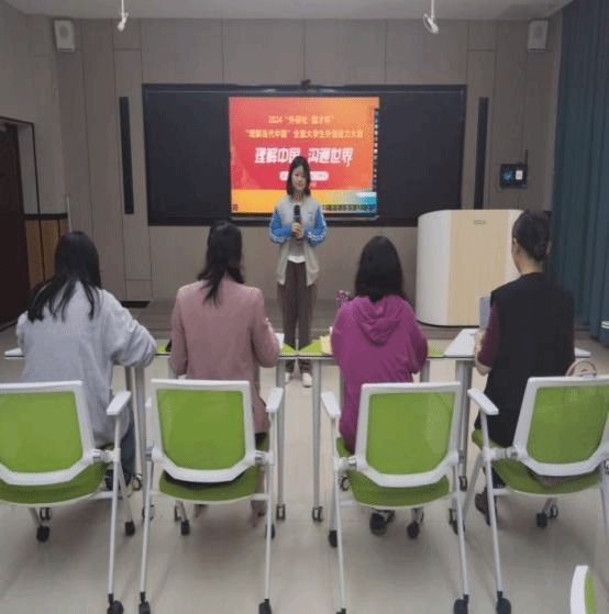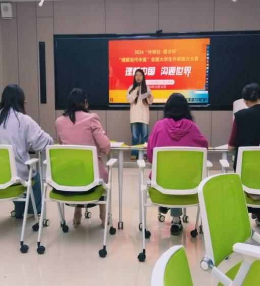 10月14日“外研社•国才杯”“理解当代中国”全国大学生外语能力大赛综合能力赛项beat365中国唯一官网选拔赛口试部分在明理楼A301教室举行 ,本次比赛以中国文化的龙为主题,吸引了众多英语爱好者的积极参与。