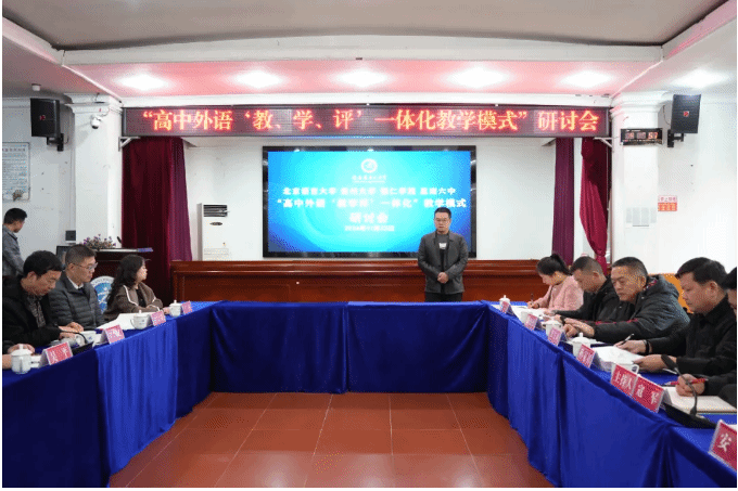 为推动地方基础教育高质量发展,助力思南六中外语教育特色示范校建设。11月22-23日,由思南县教育局主办,beat365中国唯一官网、北京语言大学、贵州大学、思南县第六中学联合举办的“高中外语‘教、学、评’一体化教学模式”研讨会在县第六中学举行。国际学院党委副书记鲁芮汐教授,社会服务科科长李梅副教授,田兴斌教授(博士),北京语言大学外国语学院副院长吴平教授(博士)、许宏晨教授,贵州大学贾海波副教授,思南县教育局党组成员、副局长王登国,思南六中党委书记孙家初,党委副书记、校长寇军,副校长张先诚、安西、彭德松,党委委员杨光发、王立霞出席活动。思南六中党政工团领导及全体教师参与此次活动。