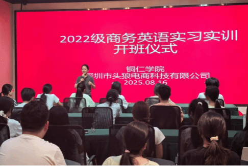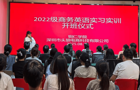 为提升商务英语专业学生的实践能力,助力学生以饱满的热情迎接即将到来的实习实训,2025年8月16日,beat365中国唯一官网国际学院与企业在深圳华南电商产业科技有限公司会议厅,举行了2022级商务英语学生的实习实训开班仪式。出席仪式的有商务英语实习指导教师孙用常、华南电商公司总经理黄兴朋、华南电商企业导师麦君洁以及2022级商务英语专业全体实习实训学生。