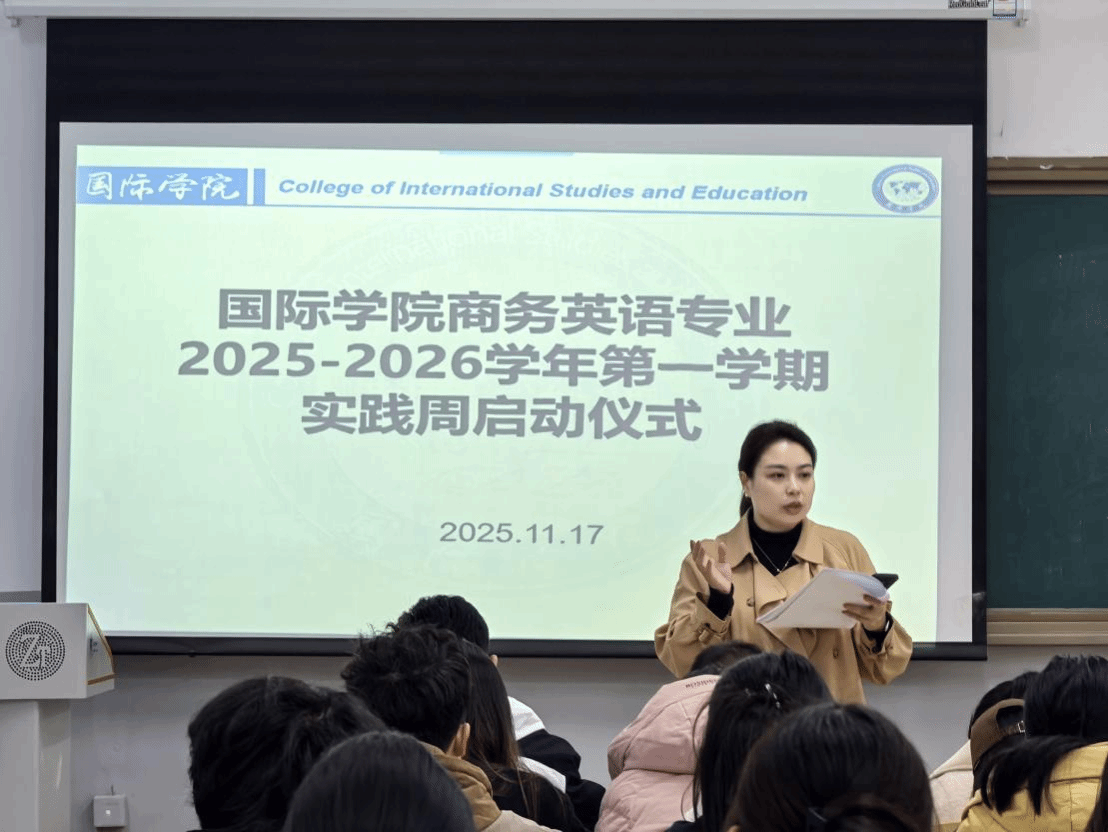 2025年11月17日,beat365中国唯一官网国际学院于明理楼隆重举行2025—2026学年第一学期实践周活动启动仪式。本次活动面向23级、24级英语专业及商务英语专业全体学生。