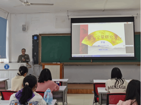 为进一步提升学生的论文撰写能力,2023年11月8日上午,国际学院罗俊博士在明理楼A 401教室开展了“定性与定量研究方法简介”讲座,2021级80多名学生参加此次讲座。讲座由科研科饶华宏主持。