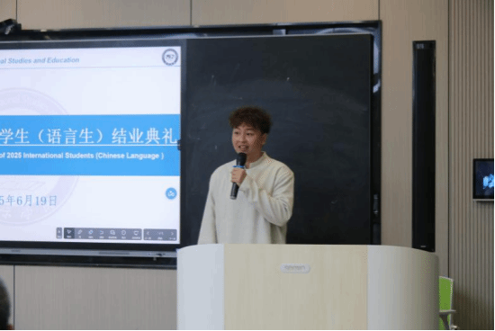 最后,刘姗代表学校作总结讲话。她以三个“关键词”概括学子成长:一是“钥匙”——汉语能力为职业发展打开更多可能;二是“勇气”——克服异国学习挑战的经历是人生财富;三是“使者”——与中国师生结下的友谊,让“人类命运共同体”有了生动注脚。她特别致谢国际教育系全体教师:“是你们用专业与耐心,点亮了学子的汉语之路,为学校国际化发展作出重要贡献。”最后,她深情邀约:“结业不是终点,beat365中国唯一官网永远是你们在中国的家,欢迎常回来看看!”