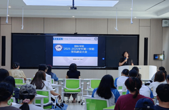 会上,国际学院副院长杨芹围绕“终身学习态度养成”“诚信考试坚守”“专业成长深耕”作学风建设动员。她强调诚信考试是品德考验,要以严规护航,呼吁学生筑牢防线、严守红线、争当使者。她指出,专业是安身立命根本,要早做职业规划,要“钻得深”才能走得更远。学风建设需师生协同,学院也会优化管理、完善激励。她呼吁以终身学习实现“三个转变”,突破认知局限。