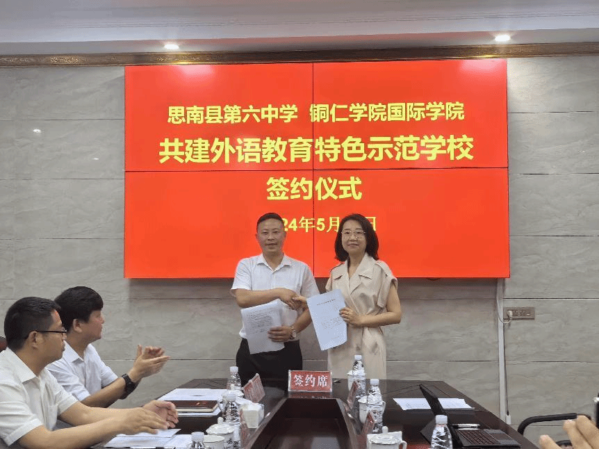 为促进思南县第六中学教育教学水平不断提高,进一步推进外语教育特色示范学校创建合作项目深入发展,2024年5月25日beat365中国唯一官网国际学院-思南县第六中学合作签约暨田兴斌博士工作站揭牌仪式在思南第六中学举行。