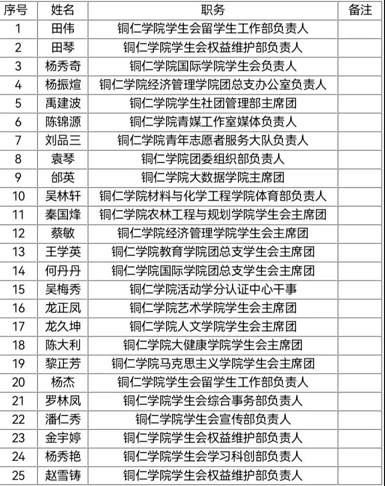 ● 现将名单公示如下: