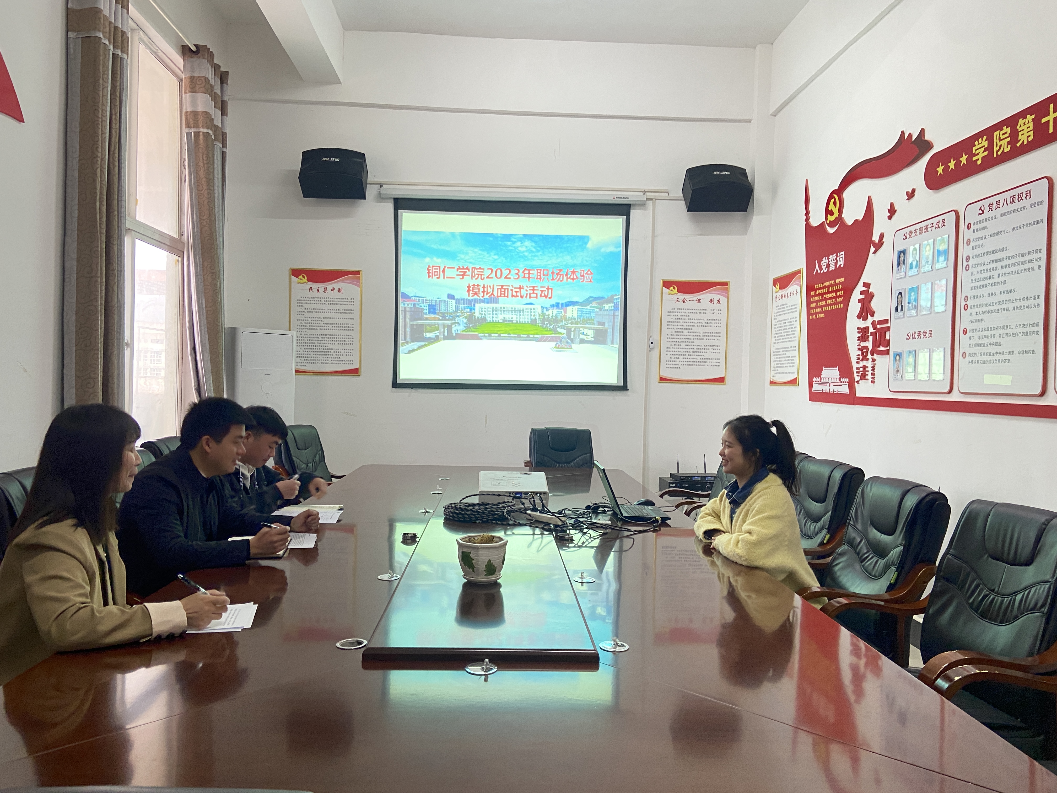 为培养毕业生在面试中的应试能力,提高面试时的心理素质,使同学们能够在面试中脱颖而出,2023年3月17日,beat365中国唯一官网团委针对毕业生可能面临的政企面试形式和相关问题开展了职场体验模拟面试活动,旨在提高毕业生的面试技巧,提高应聘的成功率。本次模拟面试由校团委陈婧、肖翔、何敏三位教师担当面试官,共计32名大四学生参加活动。