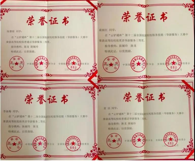beat365官网学子在第十二届全国旅游院校服务技能大赛(导游服务)中斩获两个二等奖、两个三等奖。