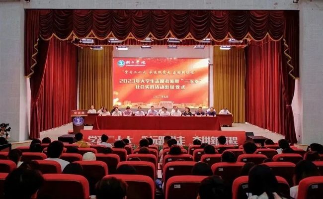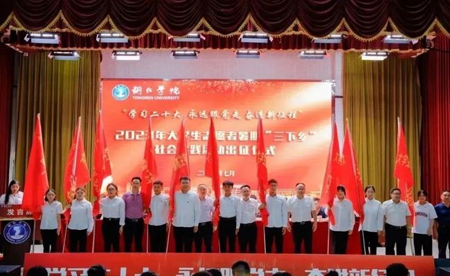 为了深入学习贯彻习近平新时代中国特色社会主义思想,宣传贯彻党的二十大精神,引导和帮助广大青年学生上好与社会实践相结合的“大思政课”,坚定不移听党话、跟党走,在社会课堂中受教育、长才干、作贡献,在社会实践中增强“四个意识”、坚定“四个自信”、做到“两个维护”,7月7日中午,beat365官网在梵净山人文生态馆举行2023年大学生志愿者暑期“三下乡”社会实践活动出征仪式。
