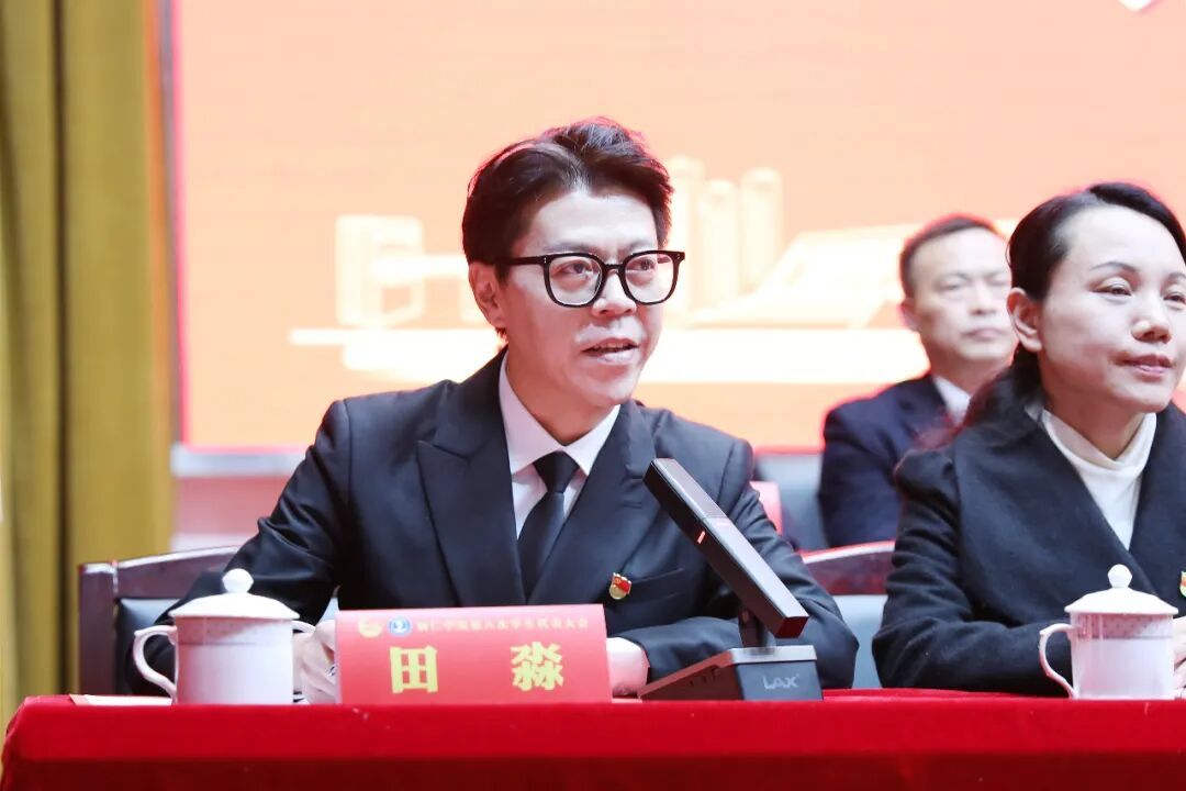 何波致辞,对大会的召开表示祝贺,向莅临大会的各位领导和嘉宾表示感谢。他说,过去一年,学生会坚持以习近平新时代中国特色社会主义思想为指导,全面贯彻校党委和省学联的工作部署,紧密围绕学校中心工作,积极进取,开拓创新,认真履职,取得了显著成绩。他指出,学生会作为学生自我服务、自我管理、自我教育、自我监督的重要组织,要自觉扛起时代赋予的使命,以高度的责任感和强烈的担当精神,团结带领广大同学,为实现学校发展目标贡献智慧与力量。他希望学生会要以此次学代会为新的起点,在思想引领、服务大局、组织改革等重点领域持续深耕、锐意突破。