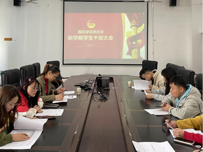 为了提高学生工作效率与能力,增强学生干部的集体责任感和凝聚力,国际学院团总支于3月9日中午在明理楼A会议室召开新学期学生干部大会,会议由团总支副书记周倩主持,团总支学会生全体学生干部参加。