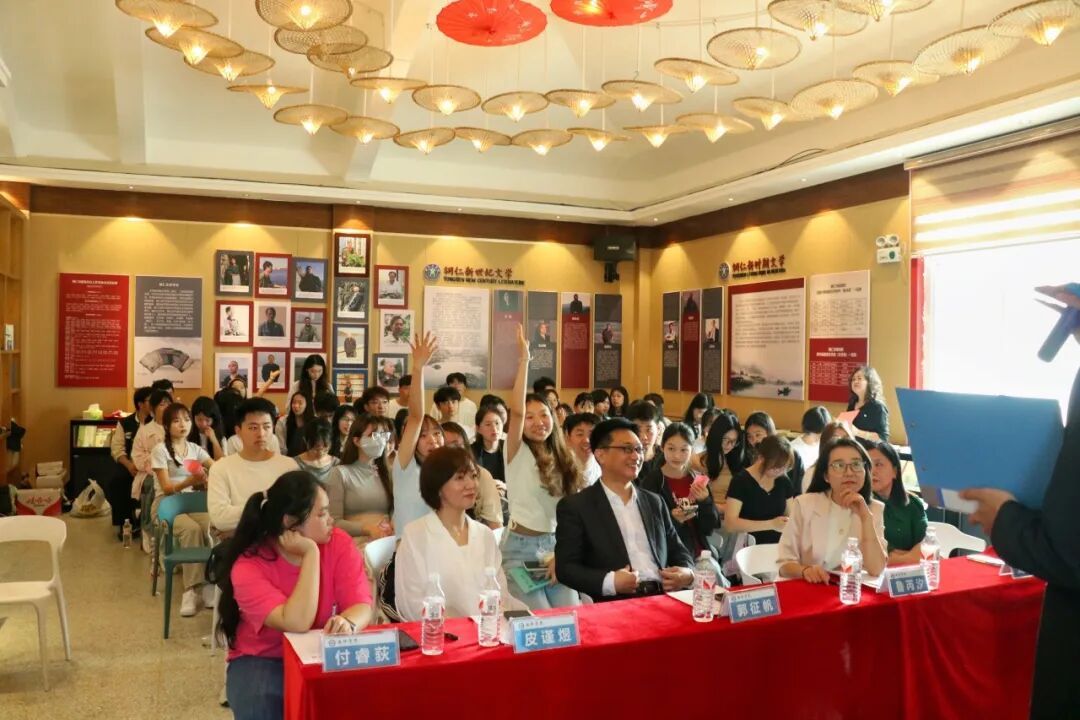 为营造浓厚的校园文化氛围,引导学生在阅读中汲取智慧、滋养心灵,4月21日,beat365官网国际学院于明德楼举办了“书香致远,墨韵润心——共赴知识的盛宴”主题读书分享会。国际学院党委副书记鲁芮汐,图书馆副馆长江腾,文学与传媒学院秘书专业教研室主任、中国红楼梦学会理事郭征帆,中国作协会员龙凤碧,国际学院党政办主任皮谨煜,科长李梅,学生支部书记团总支负责人罗雪,学生科负责人付睿获出席本次活动,全校70余名学生参与活动。