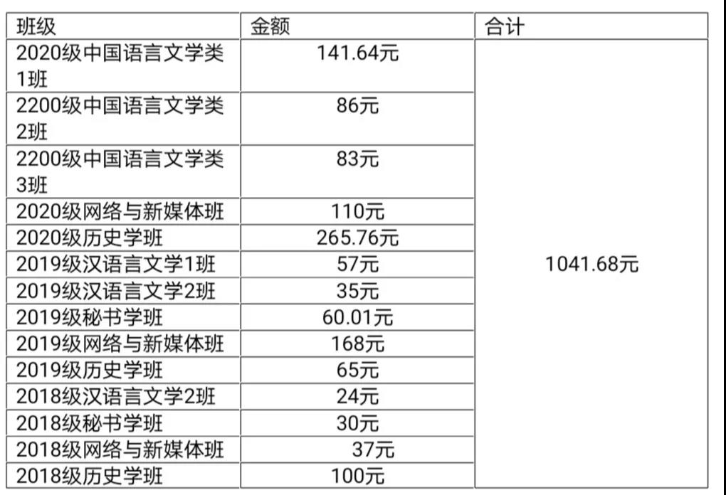 人文学院捐款明细