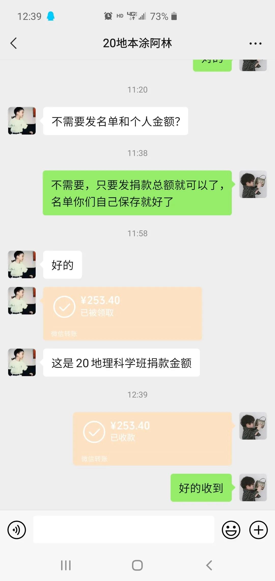 部分同学为“我为家乡捐棵树•同心共建春晖林” 植树节捐款截图如下: