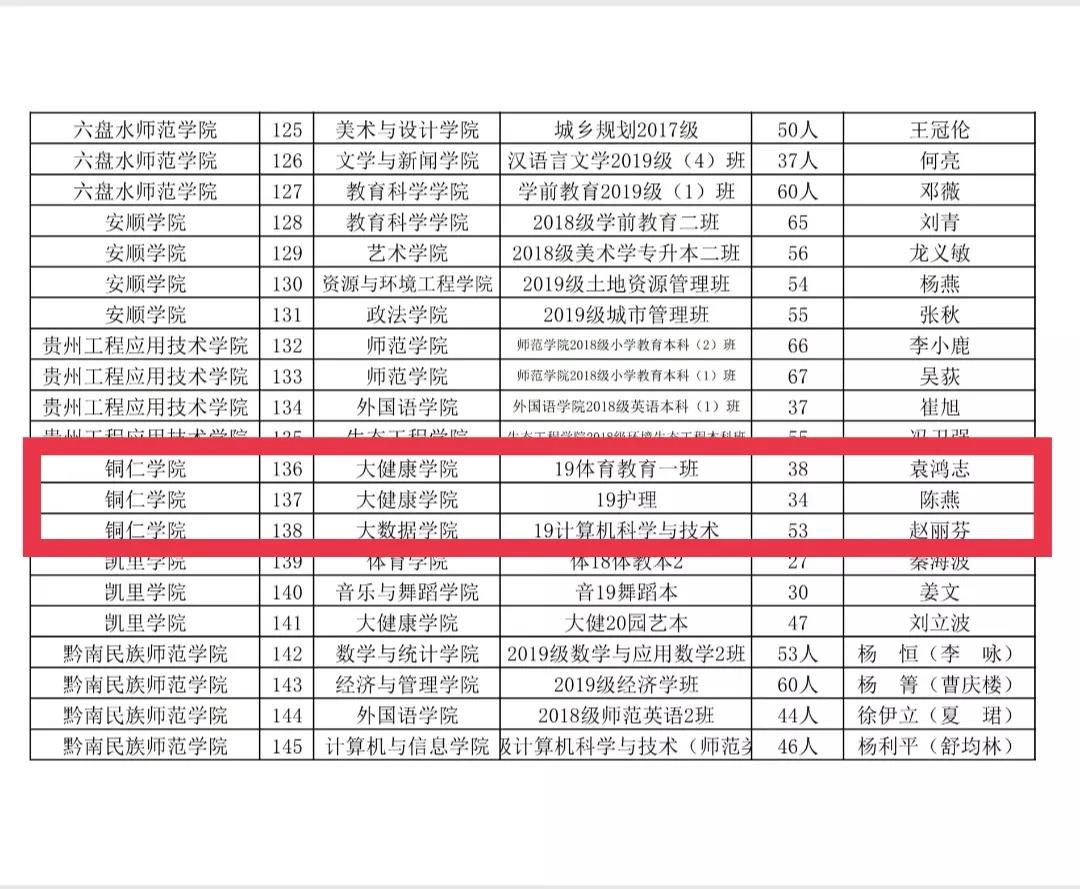 2021年贵州省普通高等学校先进班集体名单