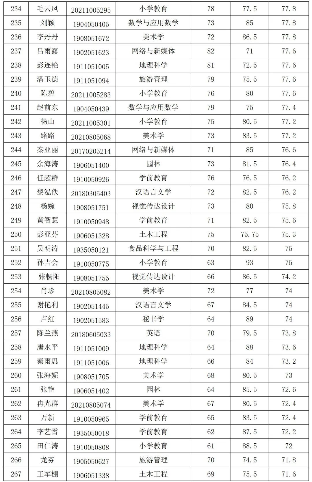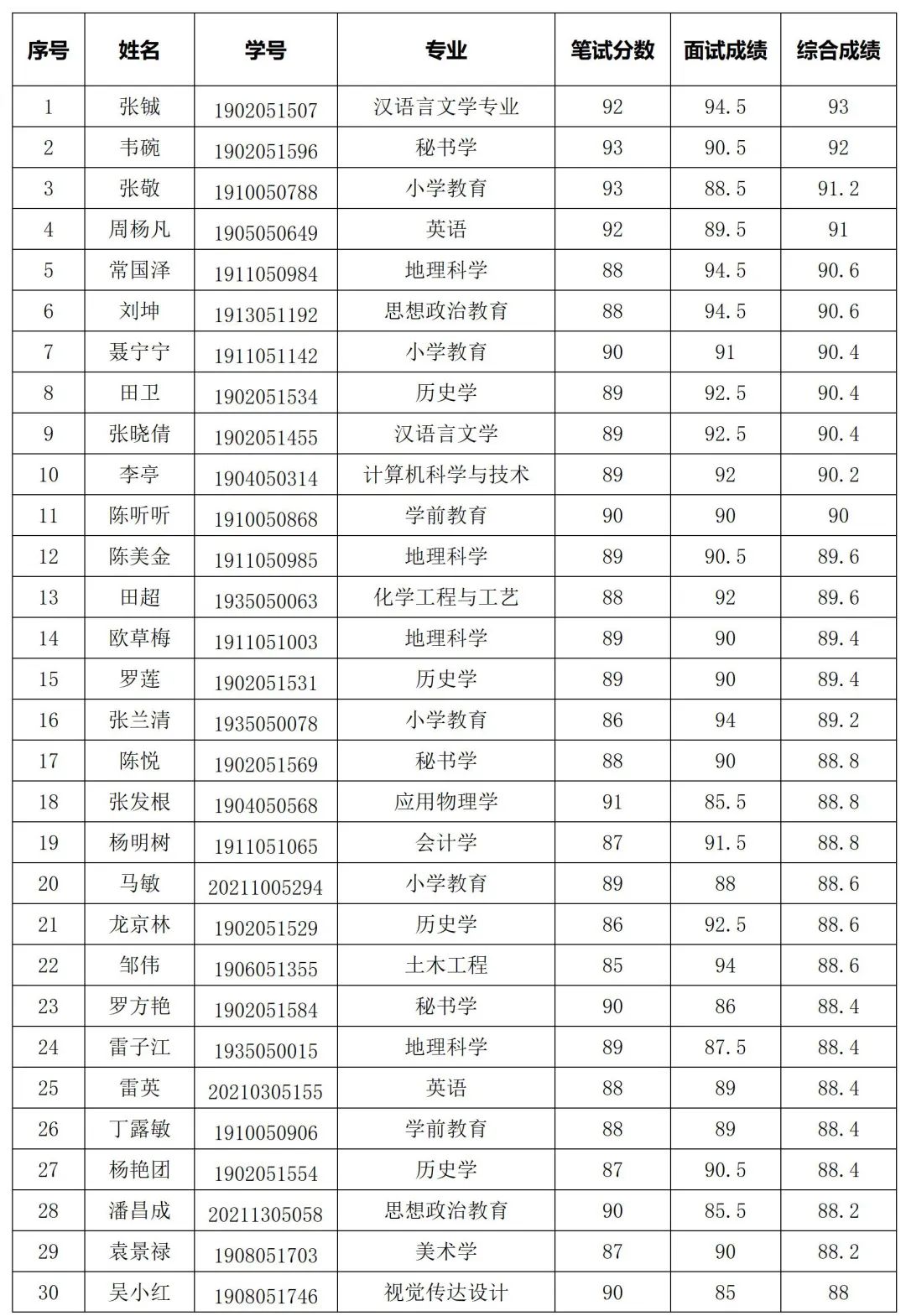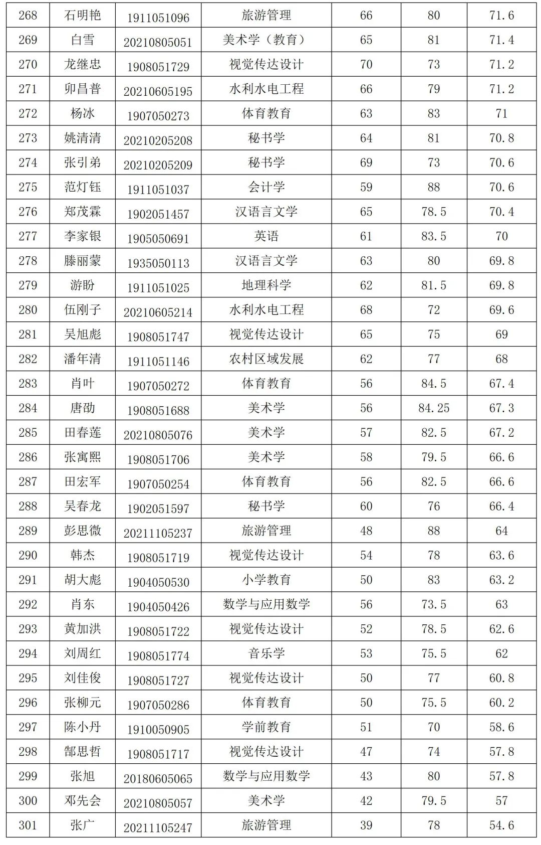 根据贵州省大学生服务西部计划项目办关于做好2023年贵州省万名大学生志愿服务西部计划乡村振兴基层项目志愿者工作的相关安排,结合学校实际,beat365官网于2023年5月25日,顺利完成西部计划招募考试笔试工作,于6月1日,顺利完成西部计划招募考试面试工作。现将301名考生综合成绩公示如下: