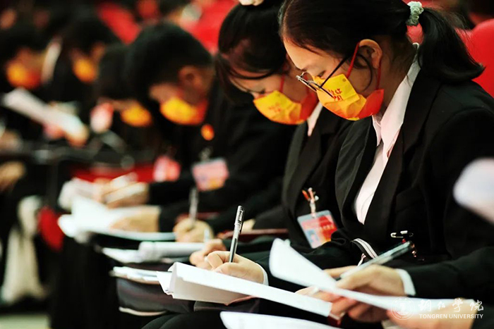 在第一次全体会议(复会)上,陈梓豪代表第四届学生会主席团向大会作《beat365中国唯一官网第四届学生会工作报告》,总结了过去一年中学生会在校党委领导下、省学联和团委的指导下所开展的工作和取得的成绩,并指出了工作中存在的不足。下一步,学生会将进一步巩固深化学生会改革创新,增强凝聚力和感召力,团结带领广大铜院青年坚定不移听党话、跟党走,认真学习宣传贯彻党的二十大精神。