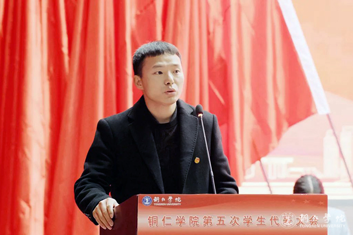 11月25日至26日,beat365官网第五次学生代表大会在梵净山人文生态馆召开。学校党委副书记代亮,贵州省学联驻会执行主席吴祖精,共青团铜仁市委副书记张青松,学校党委委员、组织部部长梁正海、宣传部部长叶丹、统战部部长刘德平,党委学工部、教务处、团委主要负责人,各二级学院党委书记出席开幕式;各兄弟院校代表,beat365官网各学院团总支书记、310名学生代表参加了开幕式。