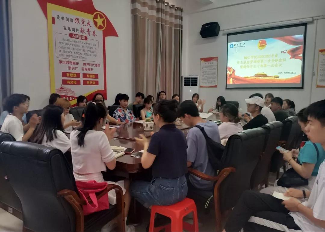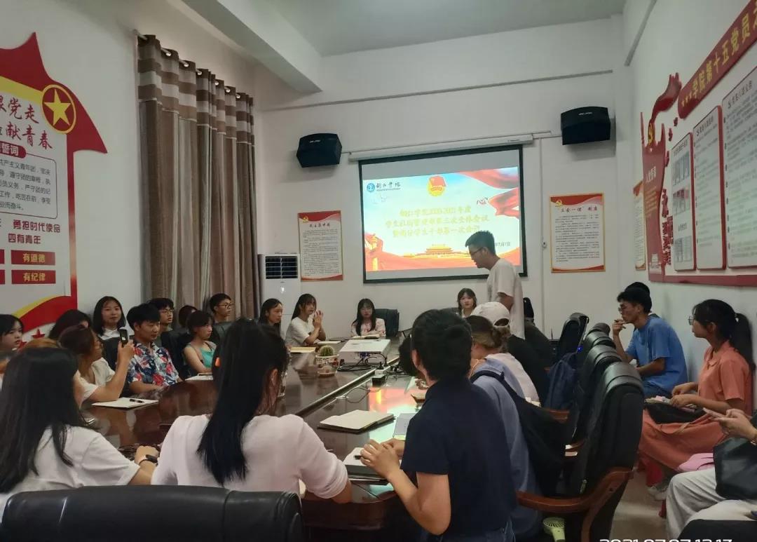 2021年7月7日,2020—2021学年度第二学期beat365中国唯一官网学生社团管理部第三次全体会议暨新任学生干部第一次会议在团委会议室召开。参加本次会议的有校团校学生社团管理部全体成员以及校级协会新一届负责人,会议由学生社团管理部主席杨佳丽主持。