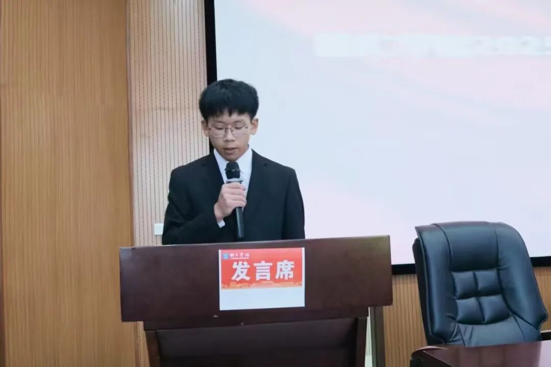 会上,上一届主席团成员杨浩首先进行发言。他回顾了过去一年里取得的成就,向一直以来关心和支持管理部和社团发展的各位老师以及同学们表示最由衷的敬意和感谢,向新任主席团和部长们致以最美好的祝愿,并提出了以下几点要求:一、坚守服务初心,传承优良部风,做社团发展的坚实后盾与贴心伙伴;二、锐意开拓创新,探索新形式、新内容,激发社团活力,吸引更多同学参与,为校园文化注入新动能;三、强化团结协作,紧密联系各社团,凝聚智慧力量,在学校指导下,共同谱写社团工作新辉煌。