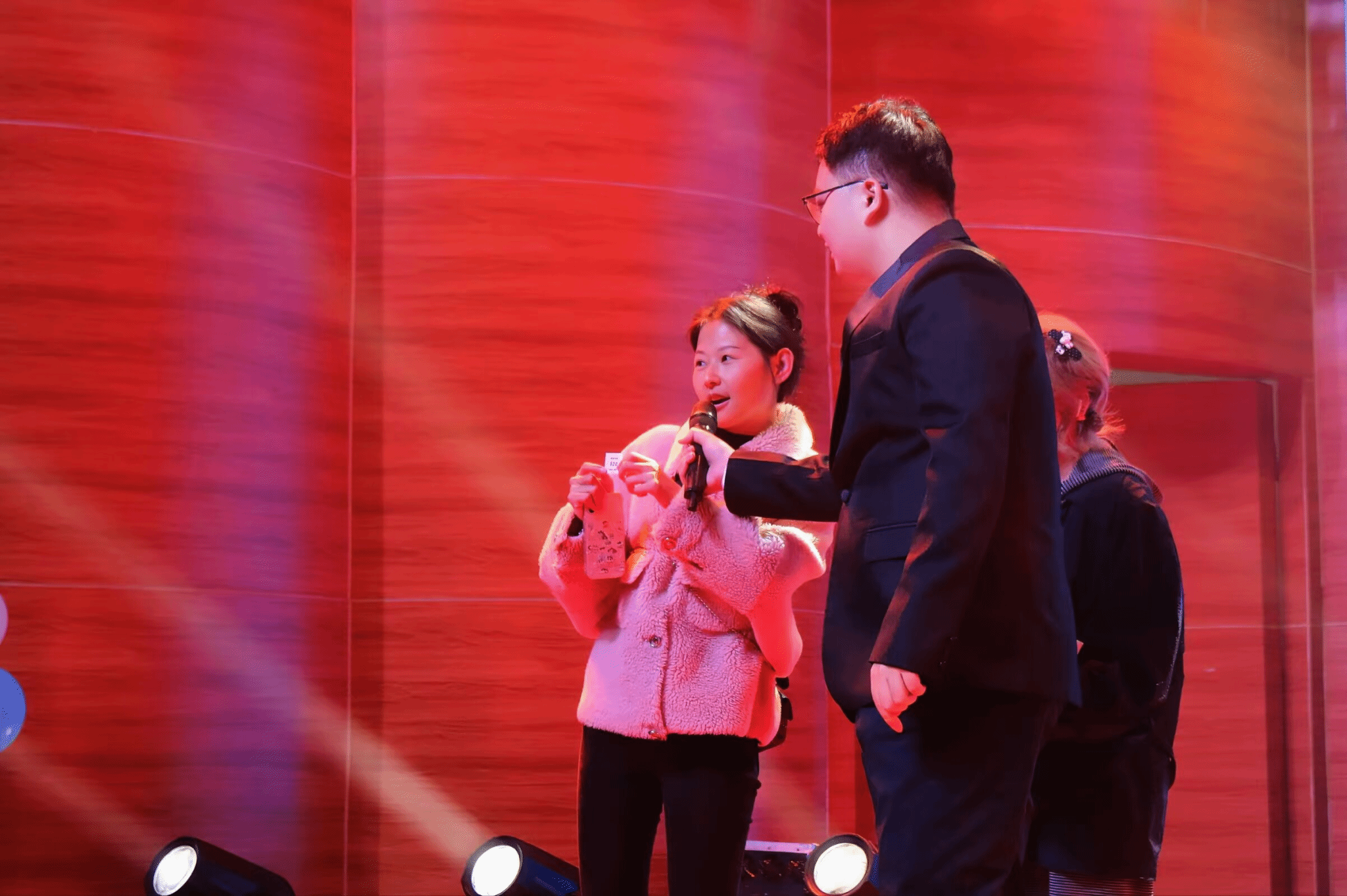 为增加赛事的趣味性与多元性,特设置了抽奖环节,现场随机选取观众拿抽奖卷,共40位幸运观众现场获得精美礼品。由徐秋逸老师组织的beat365中国唯一官网侗族大歌非遗培训班带来的《侗歌声声唱给党》非遗节目,深受现场观众青睐,这一独具特色的表演不仅为舞台增添了别样的文化韵味,更借非遗之美传递出对祖国的诚挚美好祝福。