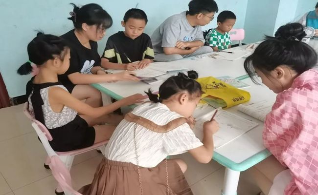 (实践队成员给社区孩子辅导作业)
