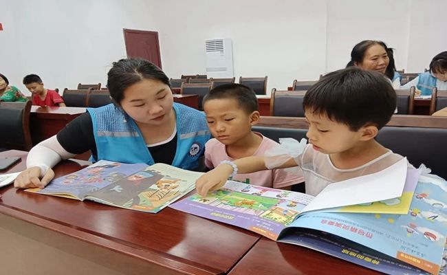 (实践队成员给小朋友讲故事)