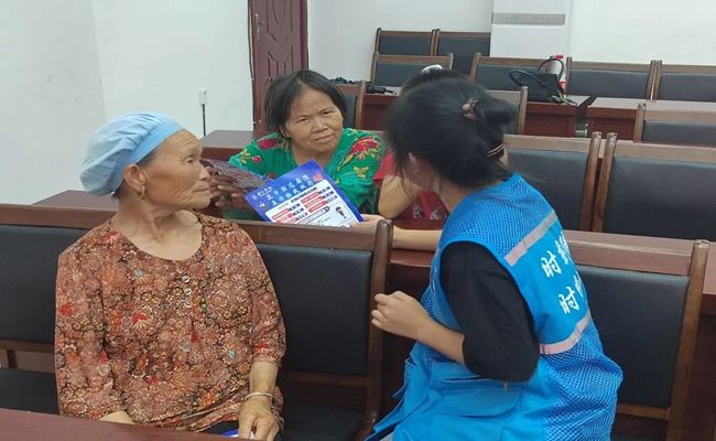 (实践队成员给老人讲防诈骗知识)