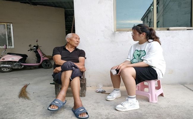 实践期间,实践队根据掌握的驻村情况,采取“点对点”走村入户的方式,深入村民家中,与村民亲切交谈,了解村民的日常生活、经济来源及特色农业等。首先,实践队向高龄老人介绍健康知识,为他们测量血压,向他们介绍血压仪器的使用方法,以便他们日后可以自己在家测量。