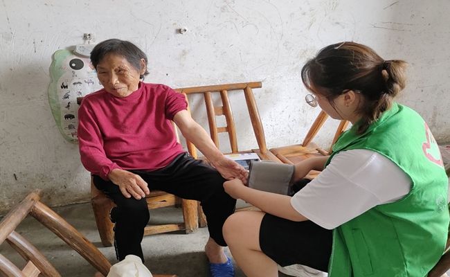 (为高龄老人测量血压)