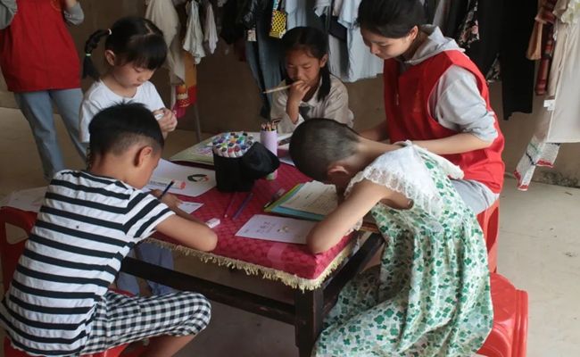 随后,在坞坭社区居委副主任张杰、居委委员杨琴的带领下,实践团队前往黄栗树和火麻坨两个组开展实践活动。到达实践地点,同学们陆陆续续都拿着暑假作业到来。为了大家更好地了解彼此、更快地融入集体以及锻炼他们表达能力,志愿者以水果蹲、你画我猜、狼人杀等游戏为起点带领小朋友们进行破冰行动。通过破冰环节,志愿者们拉进了与小朋友们的距离,了解到小朋友们的兴趣爱好,提升了小朋友们的学习兴趣。同时,根据小朋友们的兴趣和教育情况,有针对性地进行作业辅导,开设了绘画、唱歌、手工等素质拓展活动课。