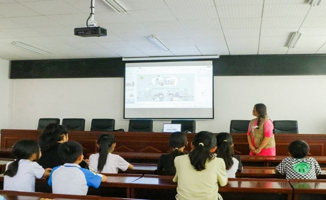 在主持人王文的介绍下,活动正式开始,课程内容围绕红色经典诵读、书写、讲解等活动展开。实践队员通过趣味性较强的PPT和通俗易懂的语言,充分调动了小朋友们的积极性。在课堂上,小朋友们积极举手、勇敢回答,实践团队队员们为积极参与的小朋友送笔袋、本子等礼物,鼓励他们好好学习,争做一个对社会有价值的人,收到礼物后,小朋友们脸上洋溢着青春的笑容。