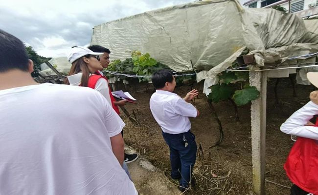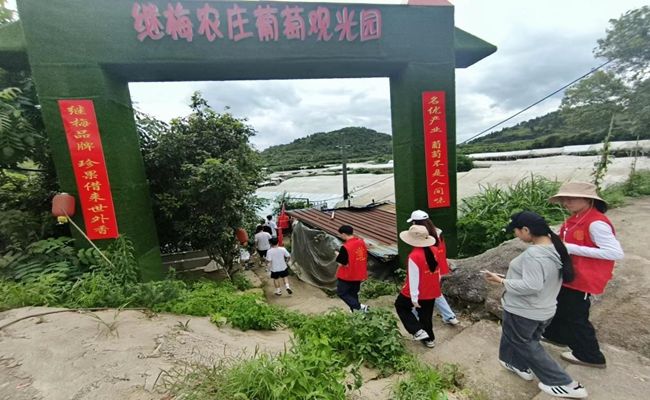 7月5日,在星光村村长和村支书的热情引领下,团队一行人来到了村内的继梅农庄葡萄观光园,这里不仅是星光村的特色产业之一,也是当地乡村旅游的重要组成部分。继梅农庄葡萄观光园构建了集葡萄种植与鸡鸭鱼养殖于一体的循环生态系统。村长和村支书向团队成员详细讲述了星光村近年来的发展历程,从基础设施的全面提升,到特色产业的精准培育,再到村民生活的显著改善,每一步都凝聚着乡村振兴政策的智慧与力量。
