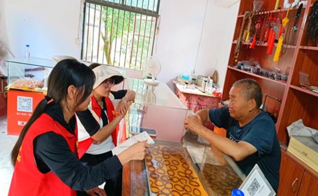 (调研团队对朱砂饰品店老板进行采访)