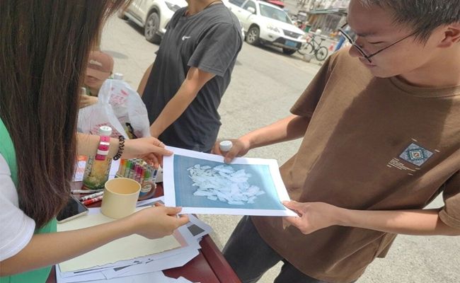 7月7日,宣讲队开展了以“禁毒防艾”为主题的剪纸活动,并积极邀请社区居民参加。活动中,一位居民与宣讲队队员共同合作,剪出了“禁毒”两字,获得了现场其他居民的一致称赞。此次活动不仅提高了居民对毒品以及艾滋病的了解程度,同时也锻炼了居民的动手能力和创新能力,丰富了市民们的业余生活。