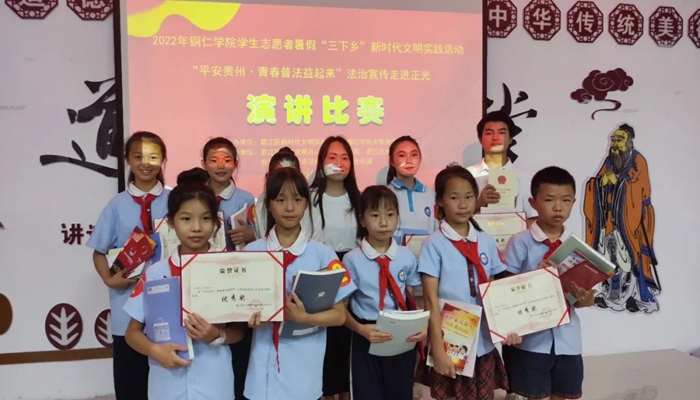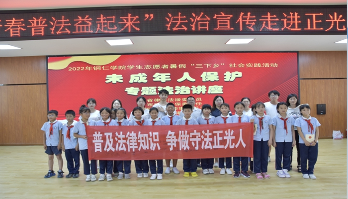 青春普法队高度重视对未成年人的法治宣传,在宣传过程中,积极与正光街道周边中小学等教育机构联系。在各学校的支持下,青春普法队去到铜仁市第二十四幼儿园、铜仁市碧江区正光小学、铜仁市第十二中学等学校,对不同年龄层的未成年人进行法治宣讲,还邀请到省律协法援委委员、市律协未保委主任、贵州骏网律师事务所主任石磊律师进行“守护明天·普法护伴”的法治宣传讲座。活动的最后开展了普法教育演讲比赛来验收这几天普法教育的成果。