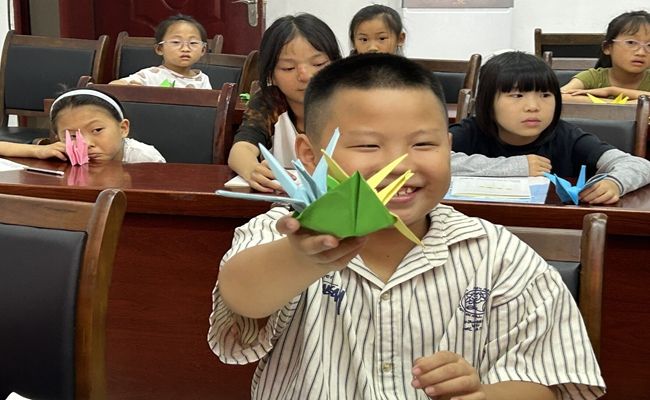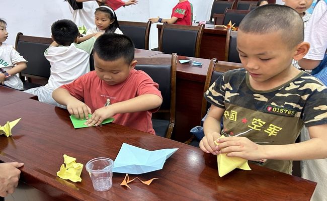 (孩子们动手叠千纸鹤)