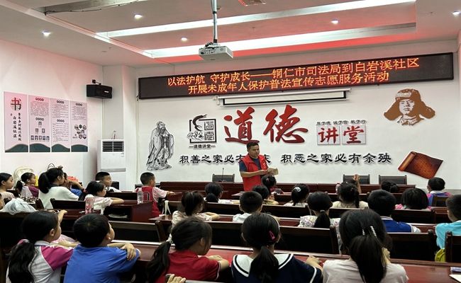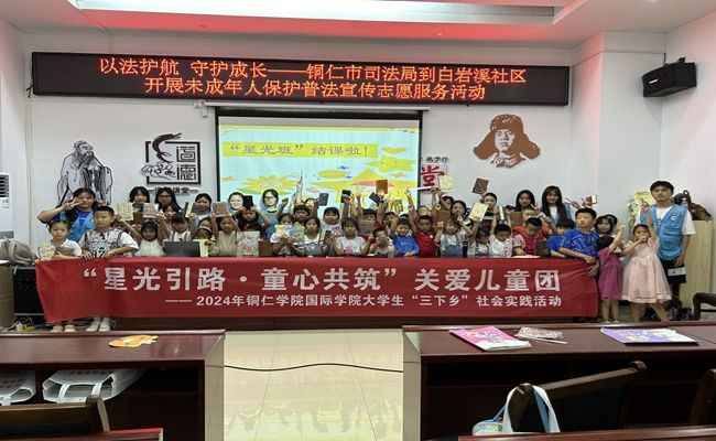 期间,"星光班"的小朋友们迎来了一场由铜仁市司法局精心准备的关于未成年人保护法的宣传活动。关爱团的成员们在现场积极辅助活动的开展,确保每一位小朋友都认真听讲、增强自我保护意识。