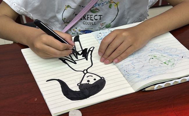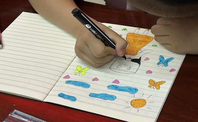 为了激发孩子们学习英语的热情,田萍同学作为主讲人,通过ppt讲解、领读、有奖问答等方式,教授了小朋友们一些常用的英语单词,如水果类、颜色类、动物类单词等。在孩子们最喜欢的画画课程中,关爱团的成员们为孩子们准备了画纸和画笔,鼓励他们发挥想象力,用色彩和线条描绘出他们心中朋友的形象。