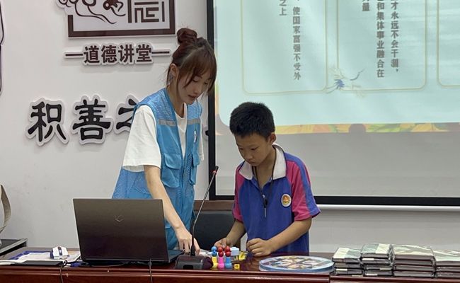 "星光班"正式开班后,迎来了不同年级的孩子们。关爱团用心筹划了有关心理健康、安全教育、爱党教育、基础英语学习、作业辅导等课程,也提前为班级成员精心准备了笔、作业本等学习物资。为了激发孩子们的学习热情,关爱团制定积分激励制度,鼓励孩子们通过积极完成作业、参与课堂讨论和游戏互动来获取积分,从而兑换自己心仪的文具奖励。