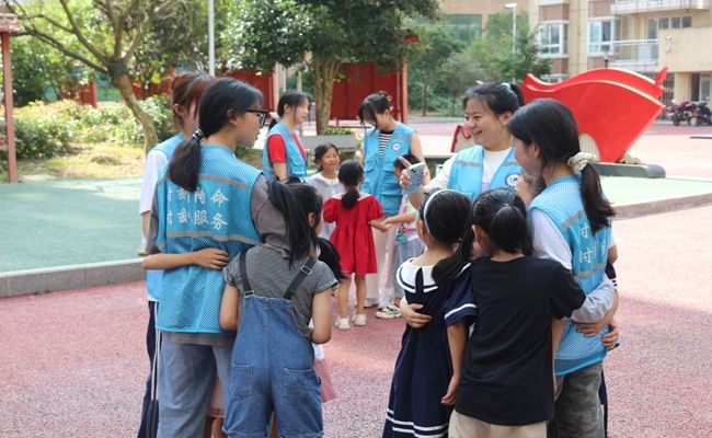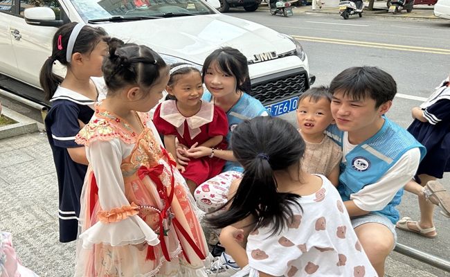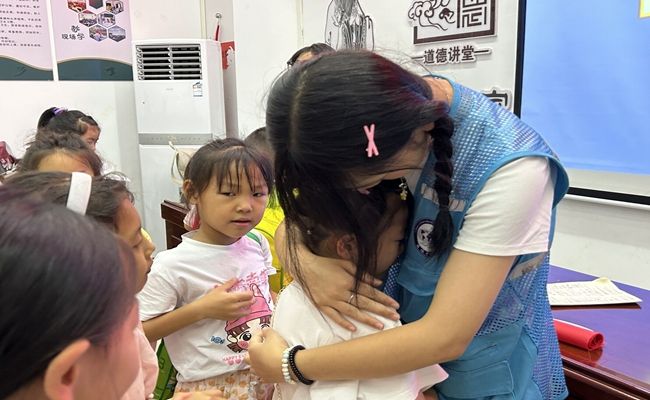 几天的相处过后,孩子们与关爱团之间的情感已悄然生根。有的孩子刚放学就迫不及待赶到班里,有的孩子骄傲地向关爱团展示自己在学校获得的奖状,还有的孩子会在课后将自己亲手编织的花儿送给关爱团的姐姐们。这些简单却真挚的举动,是心与心的交流,是爱与关怀的传递,使得孩子们与关爱团更加紧密联系在一起。在告别的时刻,孩子们和关爱团的成员们互相表达了深切的不舍之情。