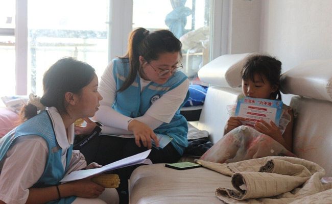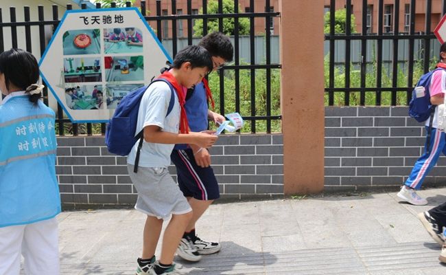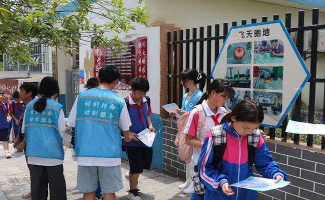 抵达白岩溪社区后,关爱团迅速投入到社区儿童防溺水安全教育的宣传工作中。在铜仁市三十二小学门口,关爱团成员们向过往的学生和家长发放宣传单,叮嘱防溺水注意事项,促进安全意识在学生和家长心中扎根。