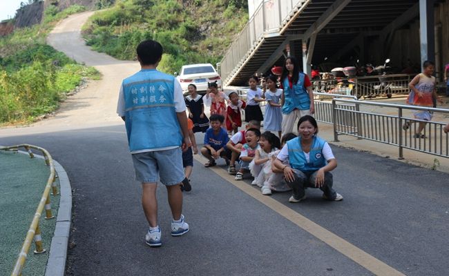 接着,关爱团的成员们带着孩子们走出课堂,开展了一系列的趣味游戏。在"老鹰捉小鸡"游戏中,孩子们灵活地躲避着,笑闹声此起彼伏;"爱的抱抱"让孩子们在温暖的拥抱中感受到团队的力量和彼此的关怀;在"小小座谈会"中,孩子们围坐在一起,畅所欲言,分享着自己的小故事和大梦想。