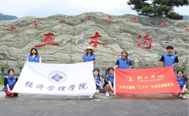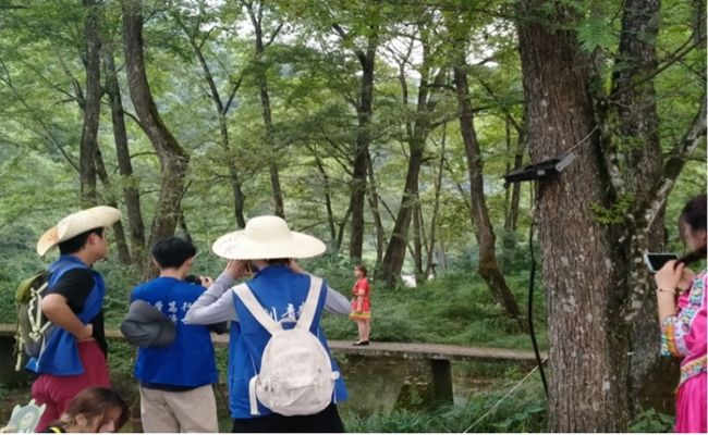 为深入学习贯彻习近平新时代中国特色社会主义思想和党的二十大精神,帮助广大青年学生上好与社会实践相结合的“大思政课”,引导和帮助青年大学生在社会课堂中受教育、长才干、作贡献,7月8日至13日,在经济管理学院学生科负责人唐鸿、团总支负责人杨湛以及指导教师徐进鸿、田晗、刘畅、洪婷的带领下,由经济管理学院9 名大学生志愿者组成的“三下乡”乡村旅游梦之队深入铜仁市江口县的亚木沟、寨沙侗寨、梵净山、云舍四大景区,为其拍摄宣传视频,深度感受并探索当地独具特色的文化魅力。