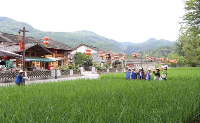 7 月12日,实践队到达本次行程的最后一站——云舍。云舍是古老的土家族村落,至今仍保留着传统的建筑风格和生活方式。实践队在这里取景,不仅记录下了村民们进行日常劳作、传统手工艺制作的画面,还拍摄了美丽的田园风光。在宣传的镜头中,既有老屋的斑驳痕迹,也有新生命的蓬勃活力,生动体现了传统建筑与现代元素的和谐共存。同时,实践队通过与村民们进行互动交流,深入了解到他们在旅游业发展过程中的困惑,引发了志愿者们对于如何在推动旅游发展的同时更好地保护和传承当地文化的深入思考。