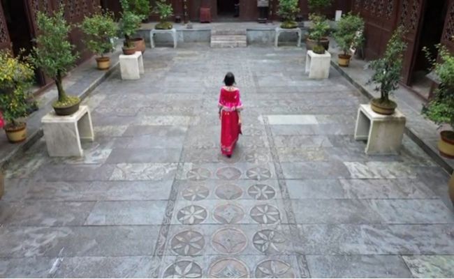 (志愿者身着民族服饰穿梭于明朝古院中)