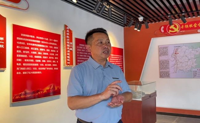 “传承红色基因,接受红色文化教育”是这次“三下乡”社会实践的另一个主要内容。在完成推普工作后,服务团师生在汪学权的带领下,重走了红六军、红三军木根坡会师的长征路,并参观了木根坡红军会合地纪念馆。纪念馆内珍藏的一件件斑驳的旧物、一张张珍贵的图片无声地诉说着革命的峥嵘岁月。